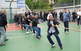 當(dāng)拔河比賽口令響起,只見參賽的隊員們緊握長繩,卯足了勁拼命往后拉,未能上場參賽的候補隊友們?yōu)樽约罕荣愱犛褏群爸群奥?、歡呼聲此起彼伏,現(xiàn)場激烈的比賽將整個活動推向了高潮。