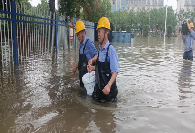 7月15日下午至7月16日上午突如其來兩場大暴雨,為東津新區(qū)、汽車產(chǎn)業(yè)園和深圳工業(yè)園供水的云灣加壓泵站所在區(qū)域一片汪洋,被積水圍困。大量的積水涌進(jìn)了機(jī)泵房,為了保障機(jī)泵的正常運(yùn)行。樊城管網(wǎng)搶險(xiǎn)隊(duì)立即行動(dòng),陳曉軍經(jīng)理、劉建軍書記帶領(lǐng)搶險(xiǎn)隊(duì)員,王昱帶領(lǐng)強(qiáng)排設(shè)備分兩隊(duì)同時(shí)行動(dòng),在第一時(shí)間到達(dá)泵站,人員和設(shè)備到達(dá)現(xiàn)場后立即投入到緊急搶險(xiǎn)工作 ,通過強(qiáng)排強(qiáng)抽降低泵房積水,使得室內(nèi)外水位高差維持在2米左右,電機(jī)維修人員羅瑞對(duì)機(jī)泵進(jìn)行安全檢測和維護(hù),保障了機(jī)泵的正常運(yùn)行。